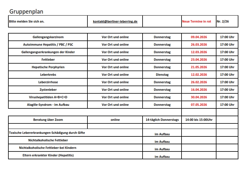 Termine für Gruppentreffen beim Berliner Leberring e.V.